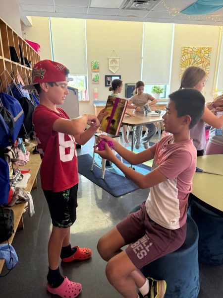 At Thomas Fleming School, Ms. Osborne’s and Ms. Guntulis’s fifth-grade classes went to Summit Street Preschool and the free library at Maple Street Park. They worked on yarn dolls, dolls made of yarn, for three days and brought them to the preschool and free library for kids to play with.